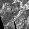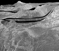 Περιοχή LaviniaΗ φωτεινή ζώνη της φωτογραφίας που διακρίνεται από πάνω δεξιά μέχρι κάτω αριστερά, είναι πιθανώς πτυχώσεις των άνω στρωμάτων του εδάφους του πλανήτη. Οι σκοτεινές περιοχές μεταξύ των πτυχώσεων είναι κοιλάδες σκεπασμένες με λάβα. Η μαύρη ταινία στο κέντρο παριστάνει απώλεια δεδομένων. |