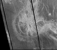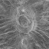 Καθώς το μαγμα ανεβαίνει προς την επιφάνεια του πλανήτη, προκαλεί λιώσιμο και ανύψωση του ανώτερου φλοιού. Καθώς το μάγμα παγώνει, ο φλοιός αρχίζει και κατεβαίνει. Έτσι, από τη συνεχή ανύψωση και καταβύθιση του φλοιού, δημιοουργούνται οι κυκλικές - ελλειψοειδείς δομές που διακρίνονται στην εικόνα. Οι φωτογραφίες έχουν παρθεί από το διαστημόπλοιο Μαγγελάνος κατά τη διάρκεια της πρώτης χαρτογράφησης το 1990 και 1991. |